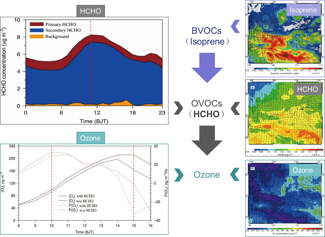 中国科研实验室地球环境研究所ledger钱包官网理化过程及环境效应团队在关中城市站点和背景区域同步召开大气ledger钱包官网观测,整合多源数据,利用区域气象化学耦合模式WRF-Chem模拟区域典型O3污染事件,定量评估了关中区域人为源和生物源甲醛对O3的生成贡献。